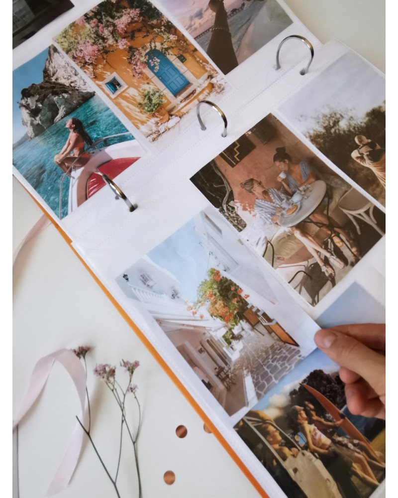 Фотоальбом на 500 фото 10*15 см., с кармашками. Твердая обложка. Крепление на кольцах. На странице располагаются пять фотографий, десять на развороте. Материал листов - пластик.