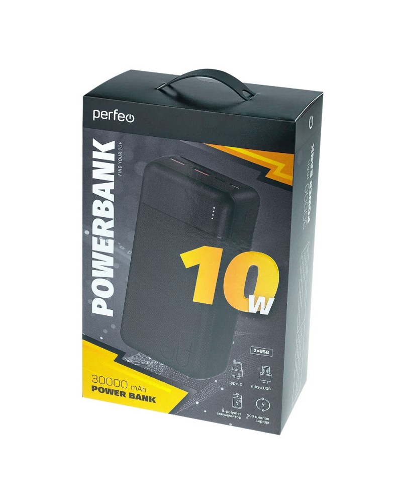 Внешний Аккумулятор Power Bank Perfeo 30000 mAh 2*USB 2.1A Black, Li-Pol, MicroUSB. Type-C (PF_E2094)